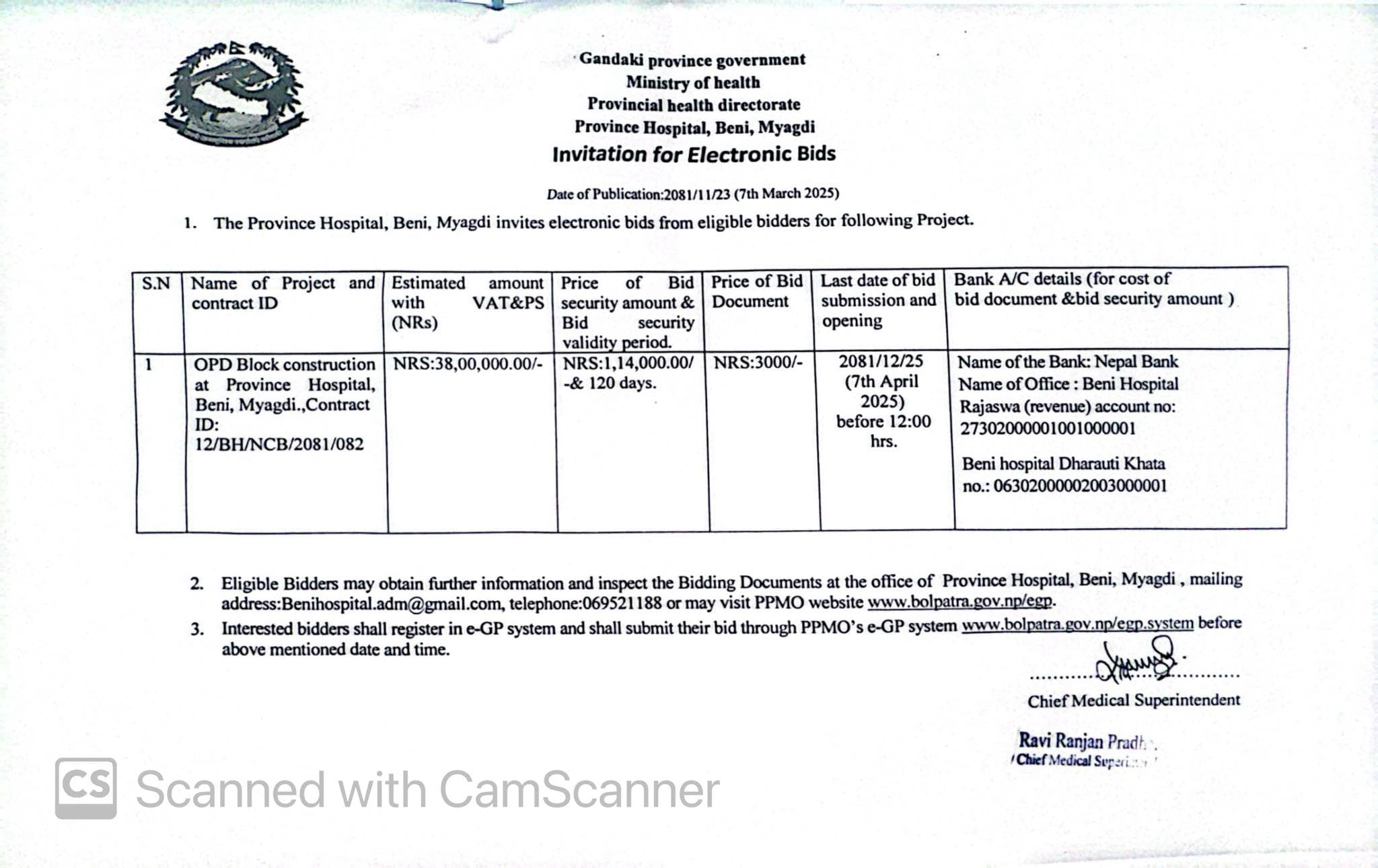 Download: opd ब्लक निर्माण सम्बन्धि बोलपत्र को सूचना