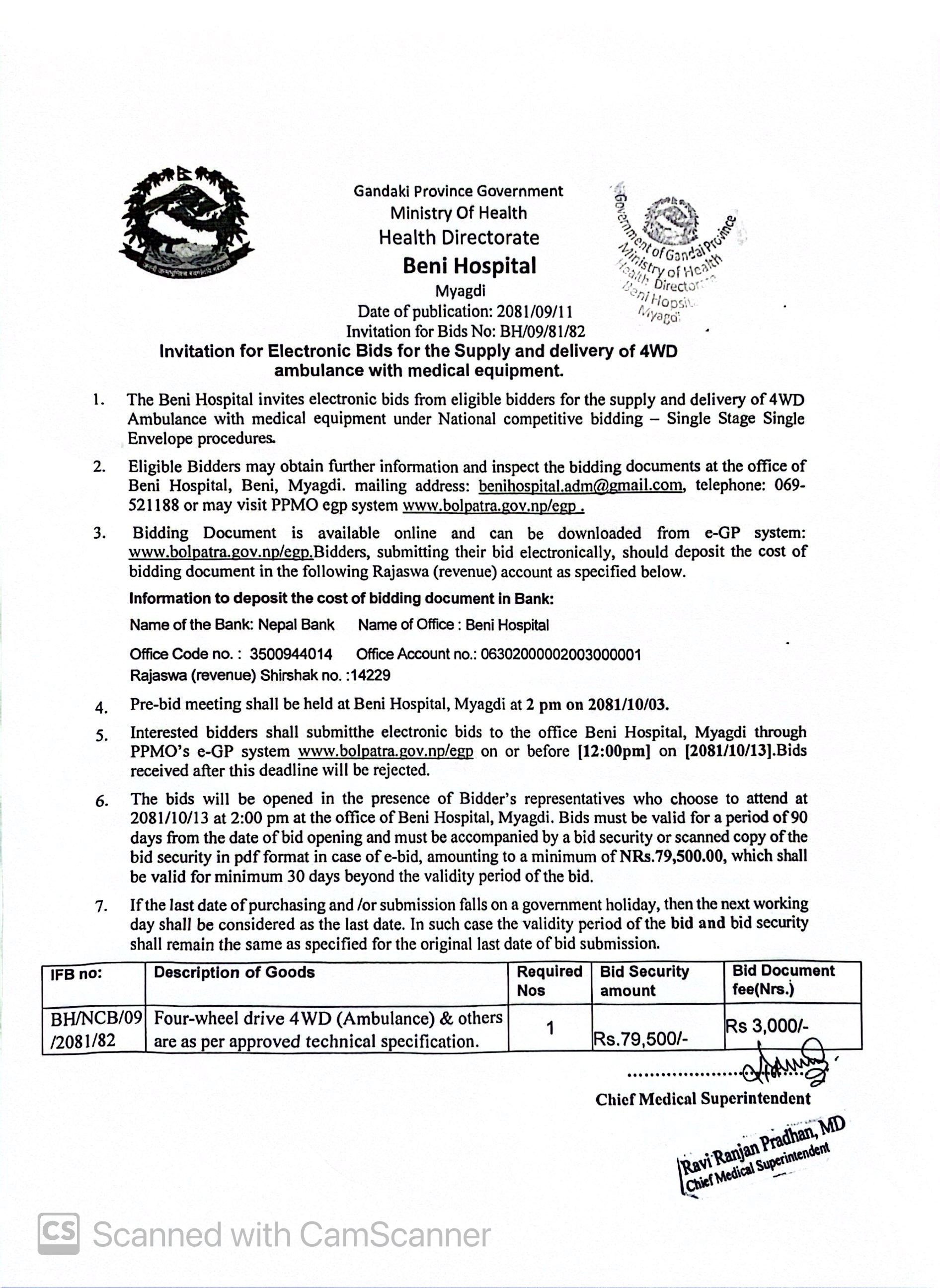 Download: एम्बुलेन्स खरिद सम्बन्धि सुचना