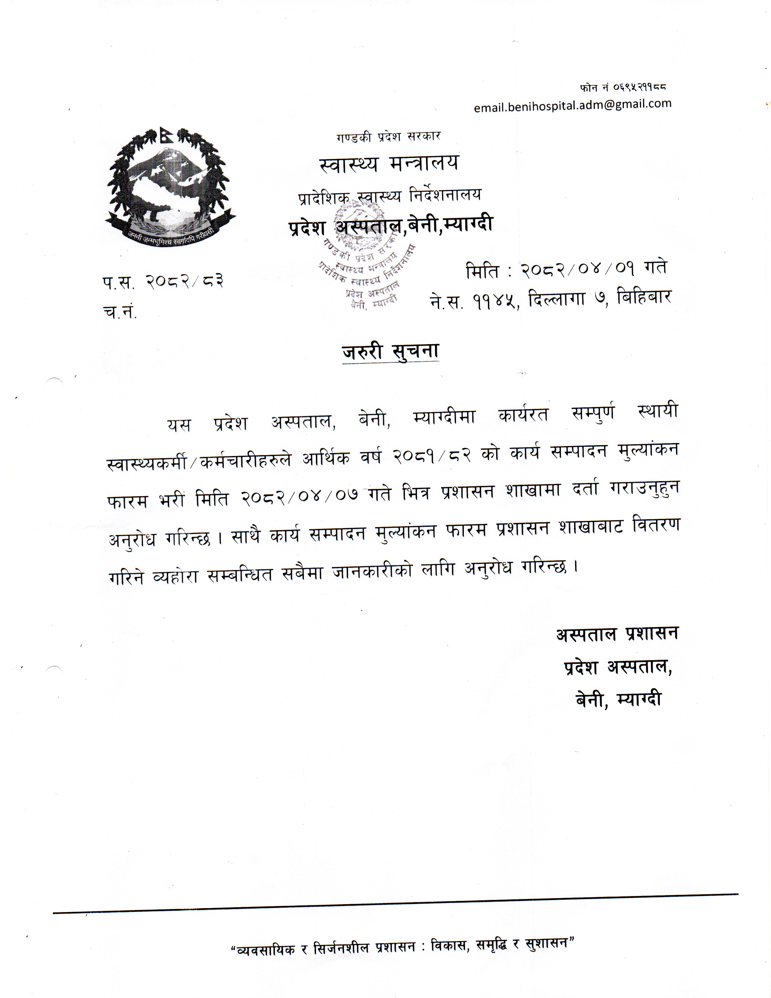 Download: स्थायी कर्मचारीहरूले कार्यसम्पादन मूल्यांकन फाराम भर्ने सम्बन्धमा